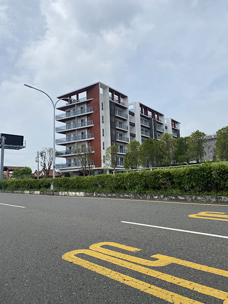 住宅社區 建築環繞中庭水池而建 周遭是一望無際 農村的風景 每層有8戶單元,面臨遊廊式的陽台,設計大面落地窗。 建築是南北向配置,簡單的二房平面,提供了可滿足小巧精緻的生活空間,寬敞景觀陽台讓人感到放鬆、傍晚與家人一同在河堤散步、接近自然是人本能的渴望,在這可以實現對家庭生活美好的想像。