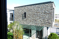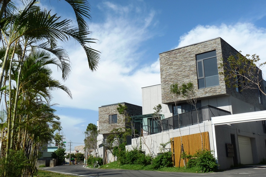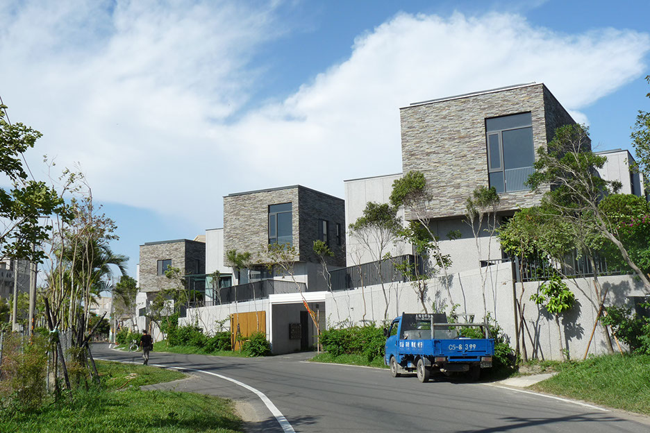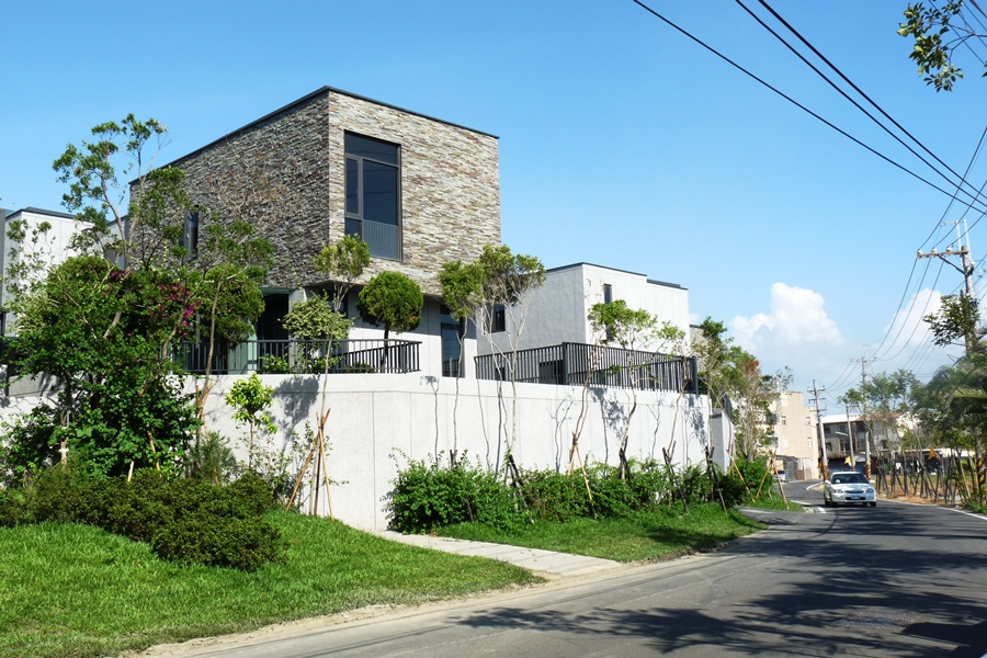 這是一個有72戶住宅的社區。本案1F規劃停車空間,2F則是客餐廚空間,為規劃一人車分道,又不必開挖地下室的社區。
