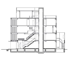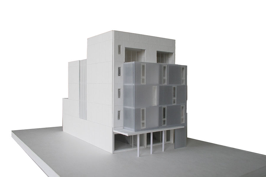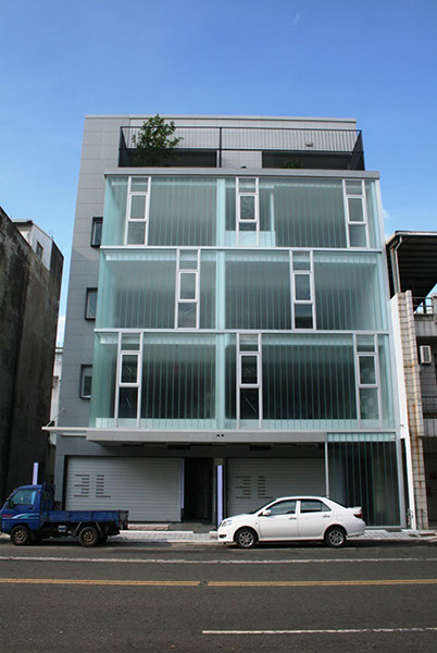 2間店鋪住宅,立面上使用U型玻璃,將整體設計成外觀優雅的單棟建築 。