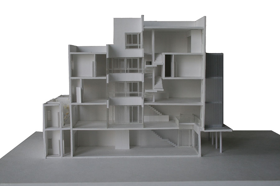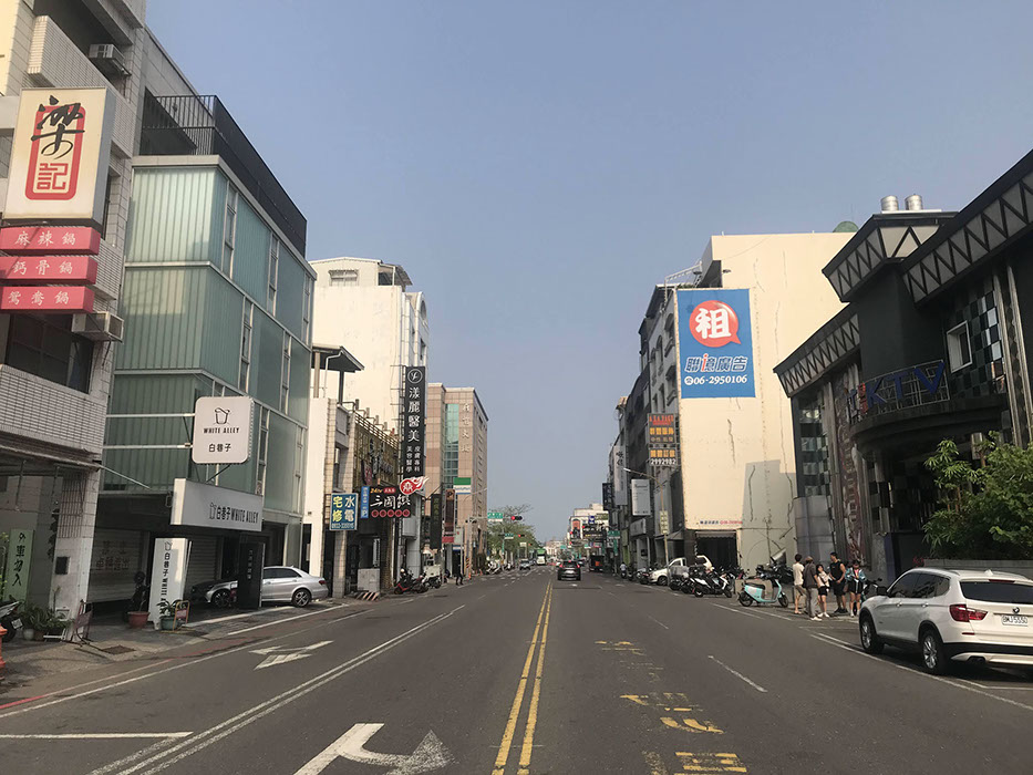 兩間在都市街道旁的店舖住宅,沿街商業氣息活絡,基地面向北,運河在基地不遠處流過,面前道路是主要進入市區的路線,平日交通繁忙,車馬喧囂。