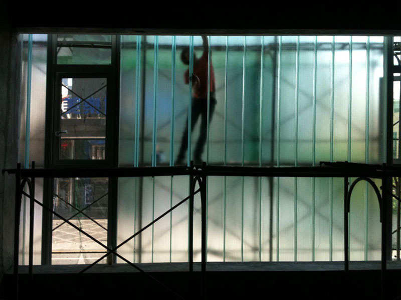 設計一個乾淨透明的玻璃盒子,店招設置在1F騎樓地上,建築立面外觀沒有台灣常見的招牌,建築可以呈現原本樣貌,沒有矯情的造型,安靜地佇立在熱鬧的街道上,反而得到更多的關注