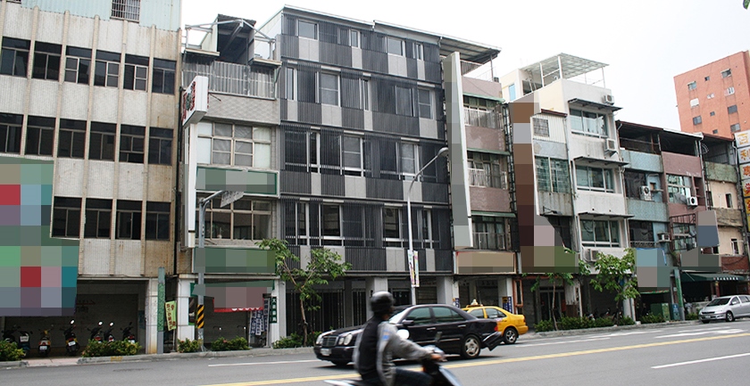 這棟建築矗立在馬路邊,正面向西,在立面設計中使用一層金屬隔柵,不僅是實現建築節能的有效策略,主要透過遮陽、隔熱和自然通風來降低建築物的熱負荷與能耗,也讓都市多一個活潑的表情。