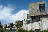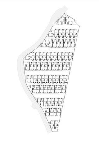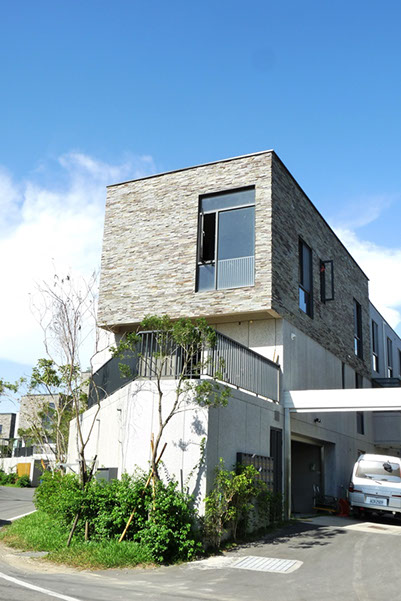 這是一個有72戶住宅的社區。本案1F規劃停車空間,2F則是客餐廚空間,為規劃一人車分道,又不必開挖地下室的社區。