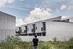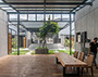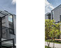 狹長型的基地自然地形成一條狹長的中庭,選擇中點為社區主要入車入口,方便社區的交通。 本案為地上2層地下1層(停車),由於停入地下,地面上的量體可以盡量低盡量小,所圍塑的中庭尺度是親切的。 下挖一層,新建2層建築,也使得土壤承載力能夠平衡,以減輕對高鐵下陷的影響。