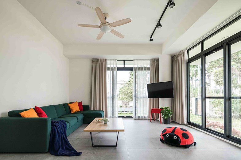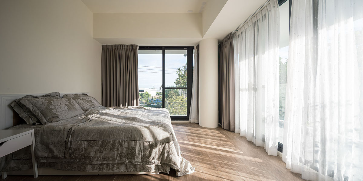 北面留有大片落地窗,一年四季都有良好通風採光;連通的陽台是層疊的框,在這感受微風輕撫過田間的芬芳。