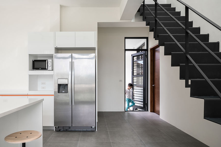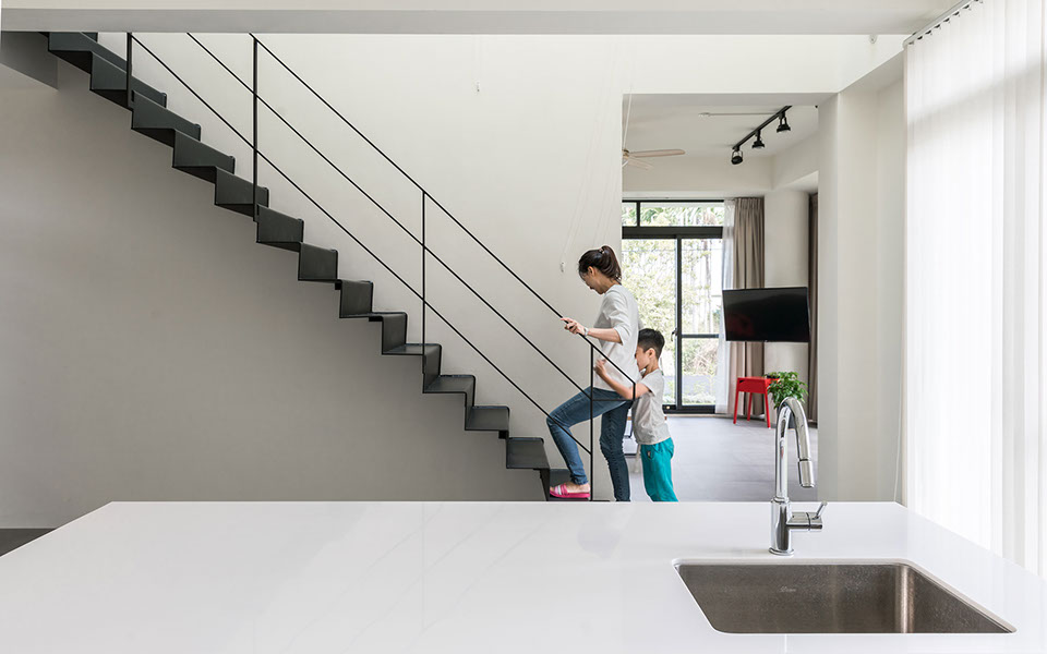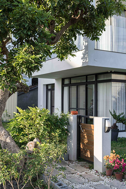 保留基地上的兩顆龍眼樹,並將建築物退到一旁,留出完整的庭院與綠地,造個麵包窯就是烘焙的好地方。