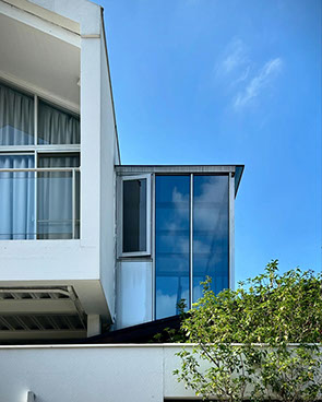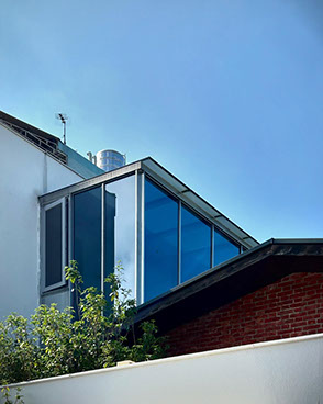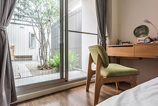 保留基地上原有的紅磚老屋,並在老屋上方增建,以滿足室內空間的需求。房間輕巧地漂浮於紅磚老屋的上方,以珍惜舊物的態度創造出這優雅的案子。