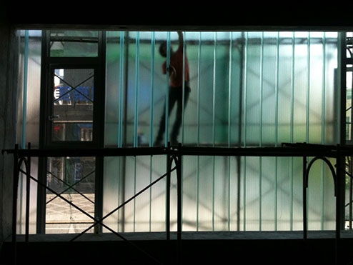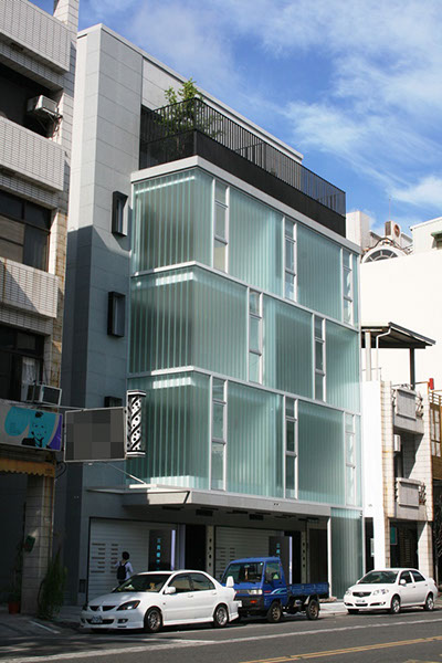 設計一個乾淨透明的玻璃盒子,店招設置在1F騎樓地上,建築立面外觀沒有台灣常見的招牌,建築可以呈現原本樣貌,沒有矯情的造型,安靜地佇立在熱鬧的街道上,反而得到更多的關注