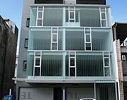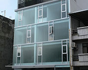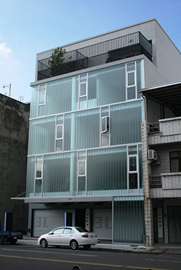 2間店鋪住宅,立面上使用U型玻璃,將整體設計成外觀優雅的單棟建築 。