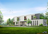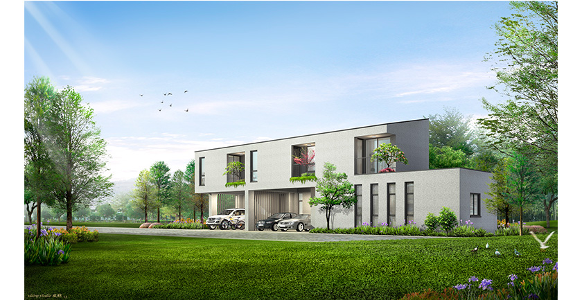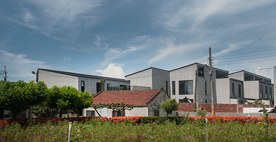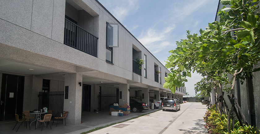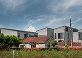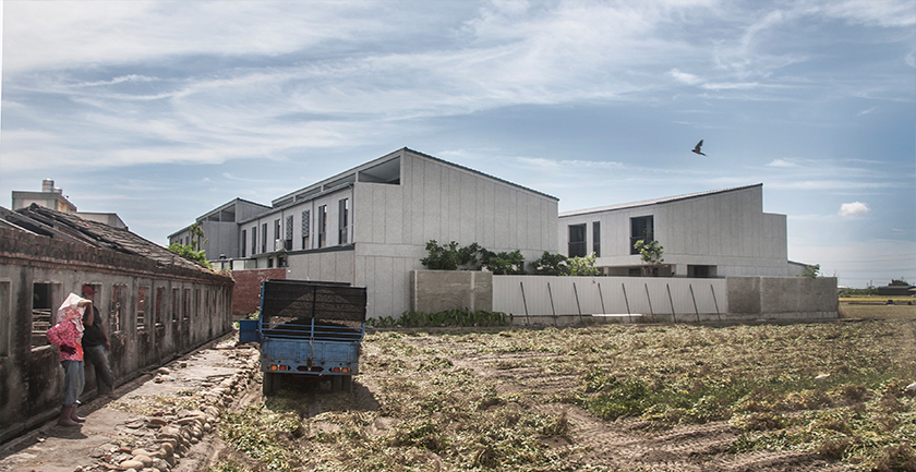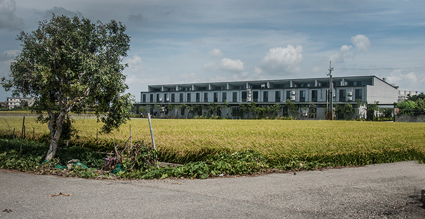 附近是一片平坦的農園,在一個三合院所佔的基地大小,集中興建21戶的二層樓透天住宅,感覺它就是一個集村的概念。