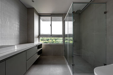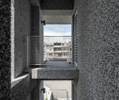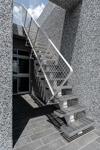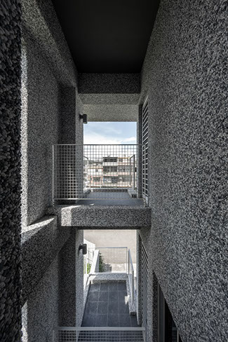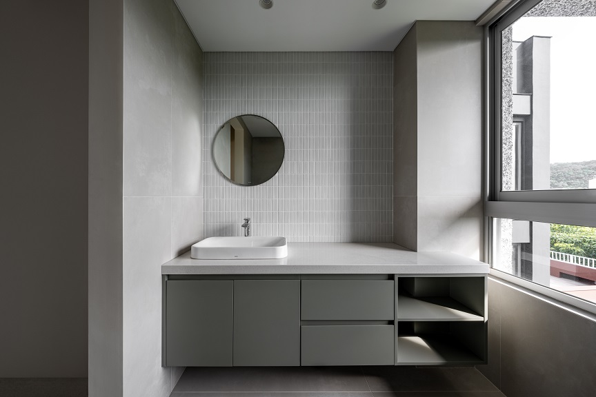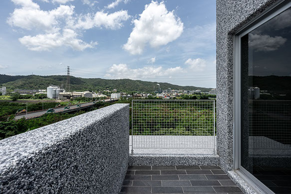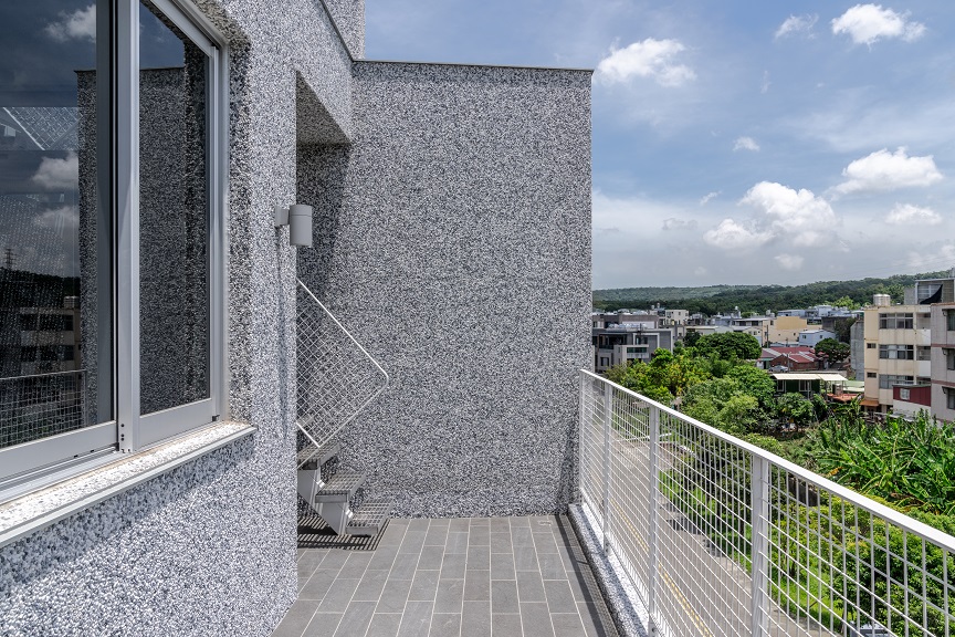 有電梯的透天住宅,客廳不一定要在2F。本案將客廳與餐廚空間設在頂樓,搭配大露台,有絕佳的視野,是全家人共同生活的空間。露臺有戶外樓梯可聯繫上下層,是屋頂花園的具體實踐。