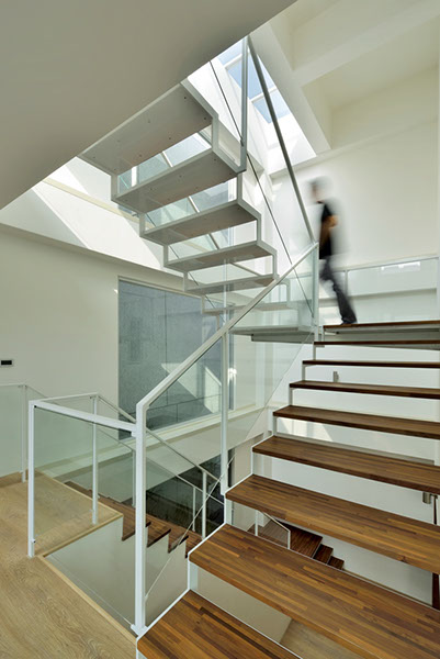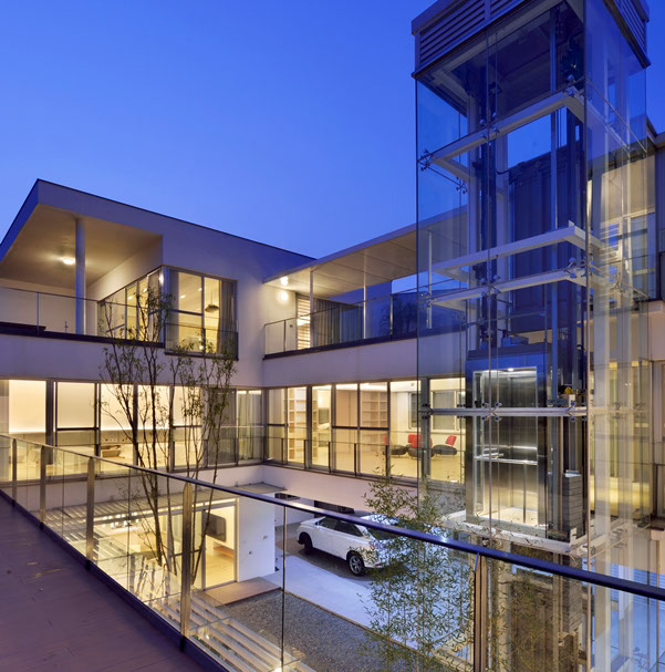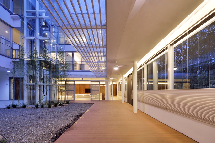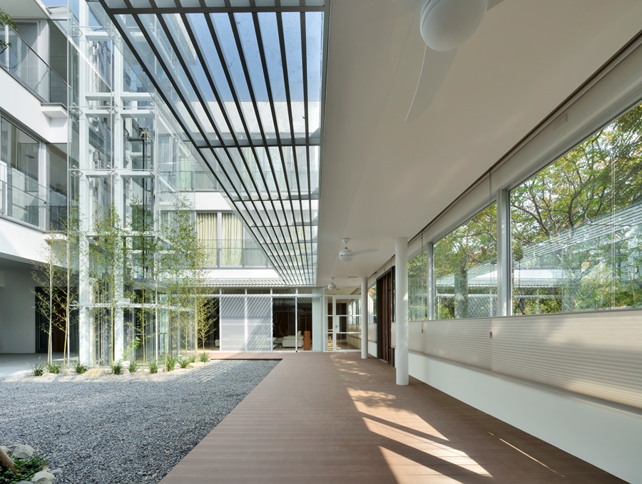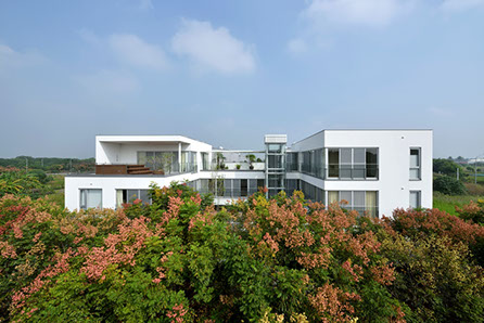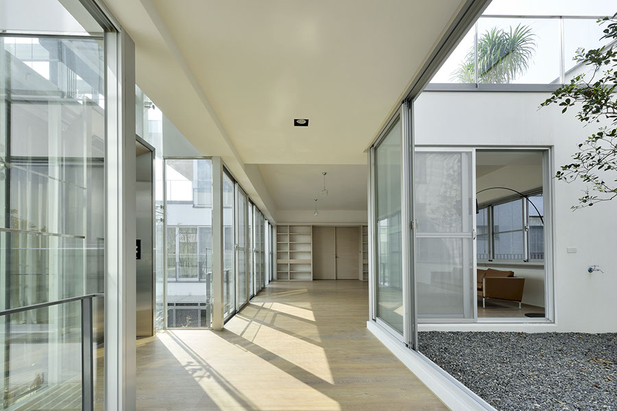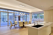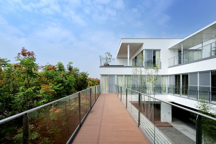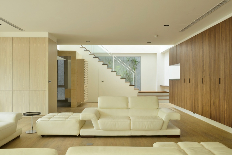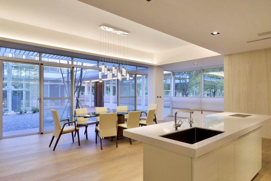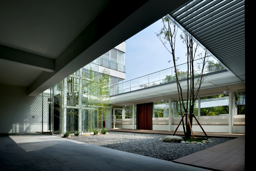 獨棟住宅,建築圍繞著中庭而建,中庭與都市綠帶銜接,剛好為張宅提供了絕佳的景致與空間緩衝。