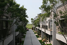 一個充滿綠蔭的住宅社區,考慮有更好的通風採光空間品質,各戶住宅都有中庭的設計。