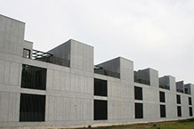 在方整的基地平面中設置一中庭,有利於整體建築的通風採光,面向內庭的外牆面可盡量大開窗,面向基地內通路的牆面考慮私密性的照顧,開口較小。